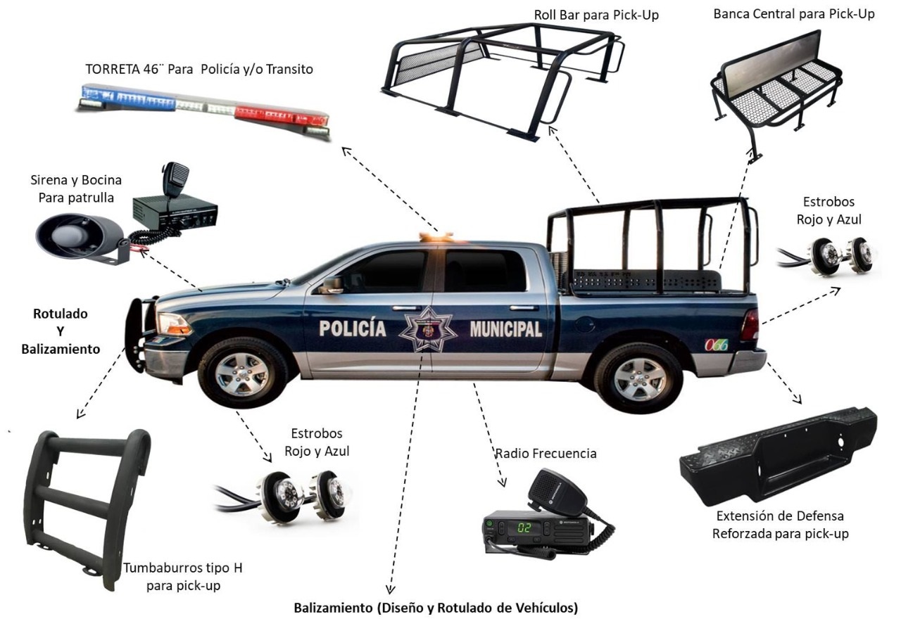Diseño y equipamiento para unidades de seguridad, protección civil y Salud (Iluminación, balizamiento, soportes de seguridad y Comunicaciones).